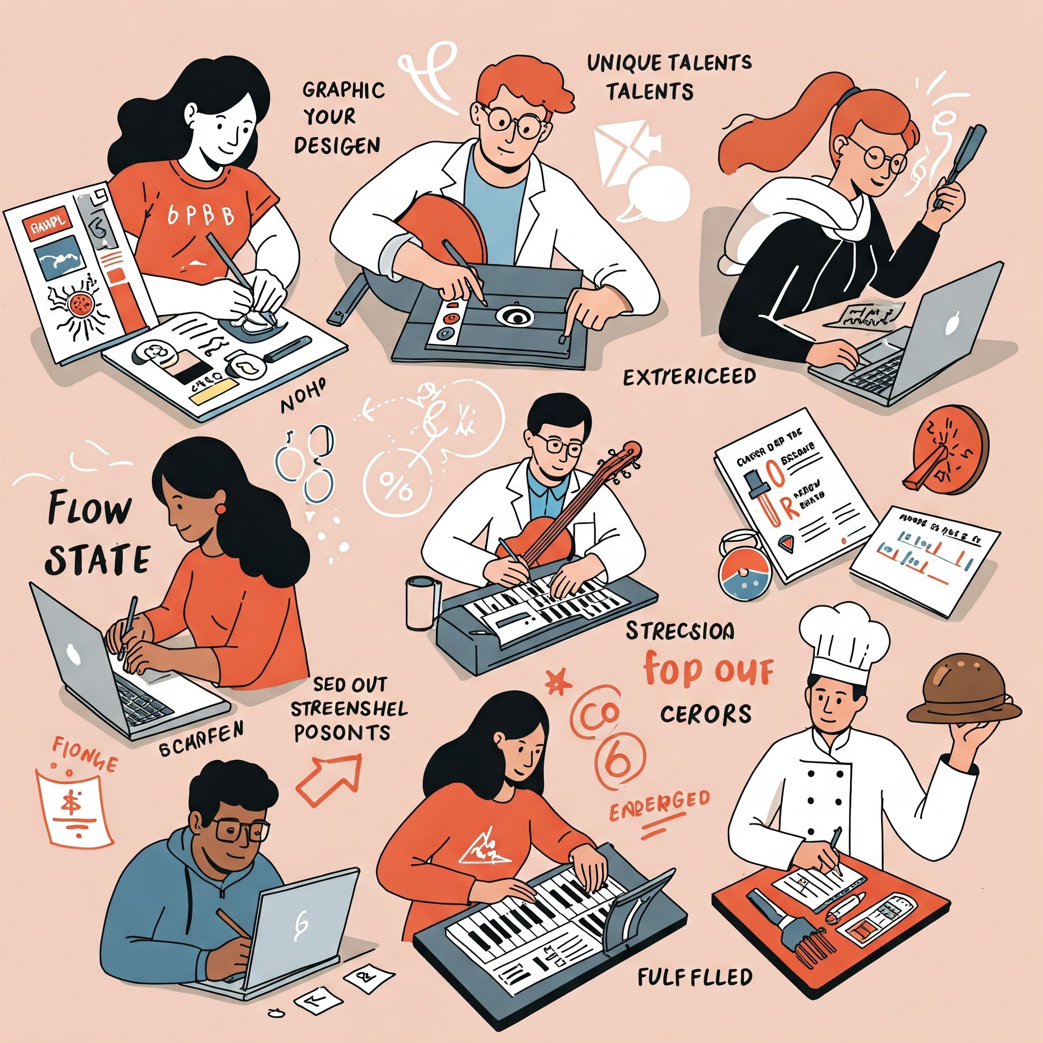 - Ubesværet flow: Arbejdet føles let, naturligt og energigivende, selvom det kan være komplekst. Du glemmer tid og sted.