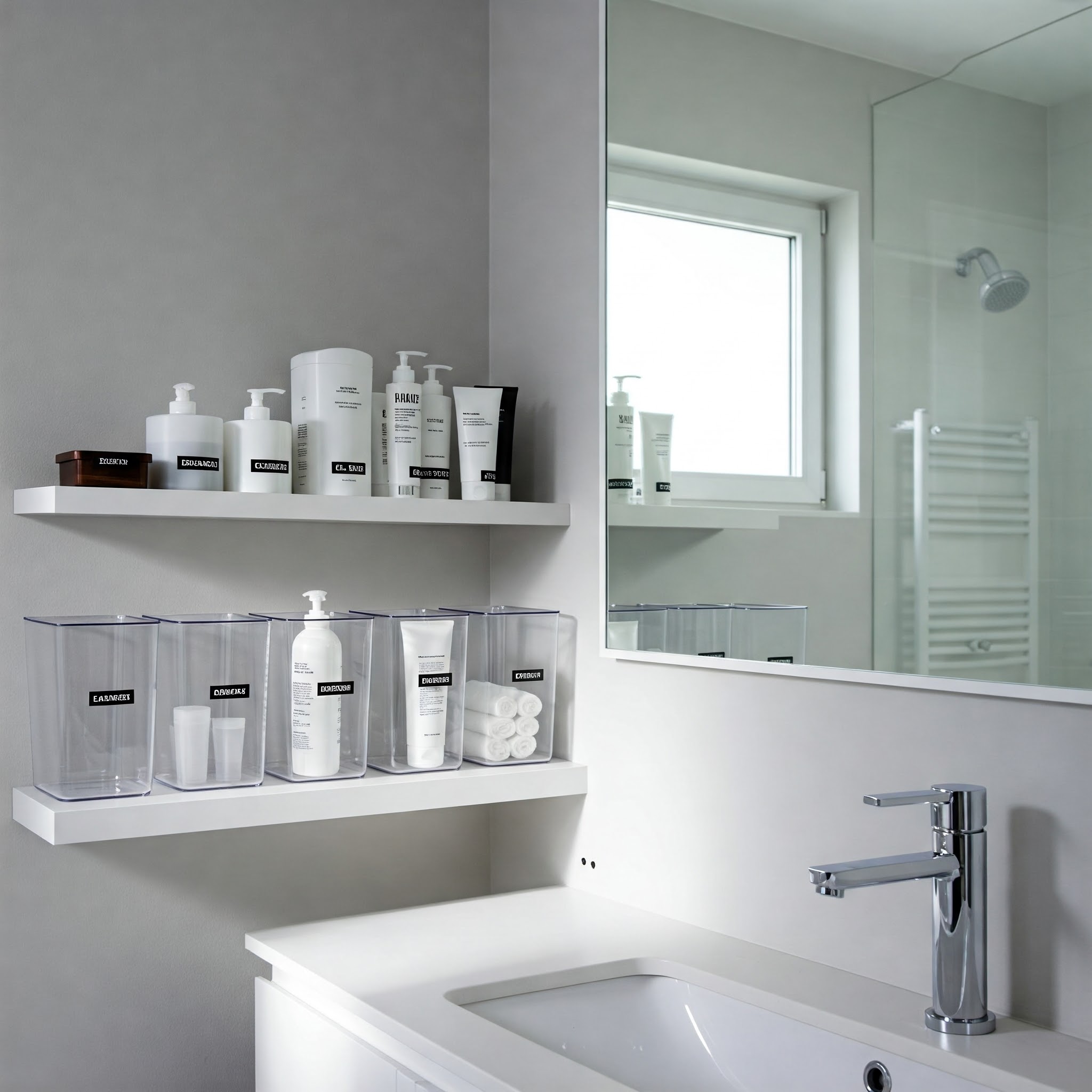 En klar og logisk placering af produkterne i badeværelset er ligeledes essentiel for at skabe overskuelighed 29. Det anbefales at organisere produkterne efter, hvor ofte de bruges, eller i den rækkefølge de indgår i ens rutine. De mest brugte ting bør placeres i øjenhøjde og inden for nem rækkevidde. Det er også en god idé at undgå at have for mange ting stående fremme, da dette kan skabe visuelt rod og gøre det sværere at finde det, man søger 32. Brug af hylder, skuffer og kurve kan hjælpe med at skabe orden og definerede pladser for hvert produkt 30. En logisk indretning, der afspejler daglige rutiner, kan mindske behovet for at huske placeringen af hvert enkelt produkt 14.