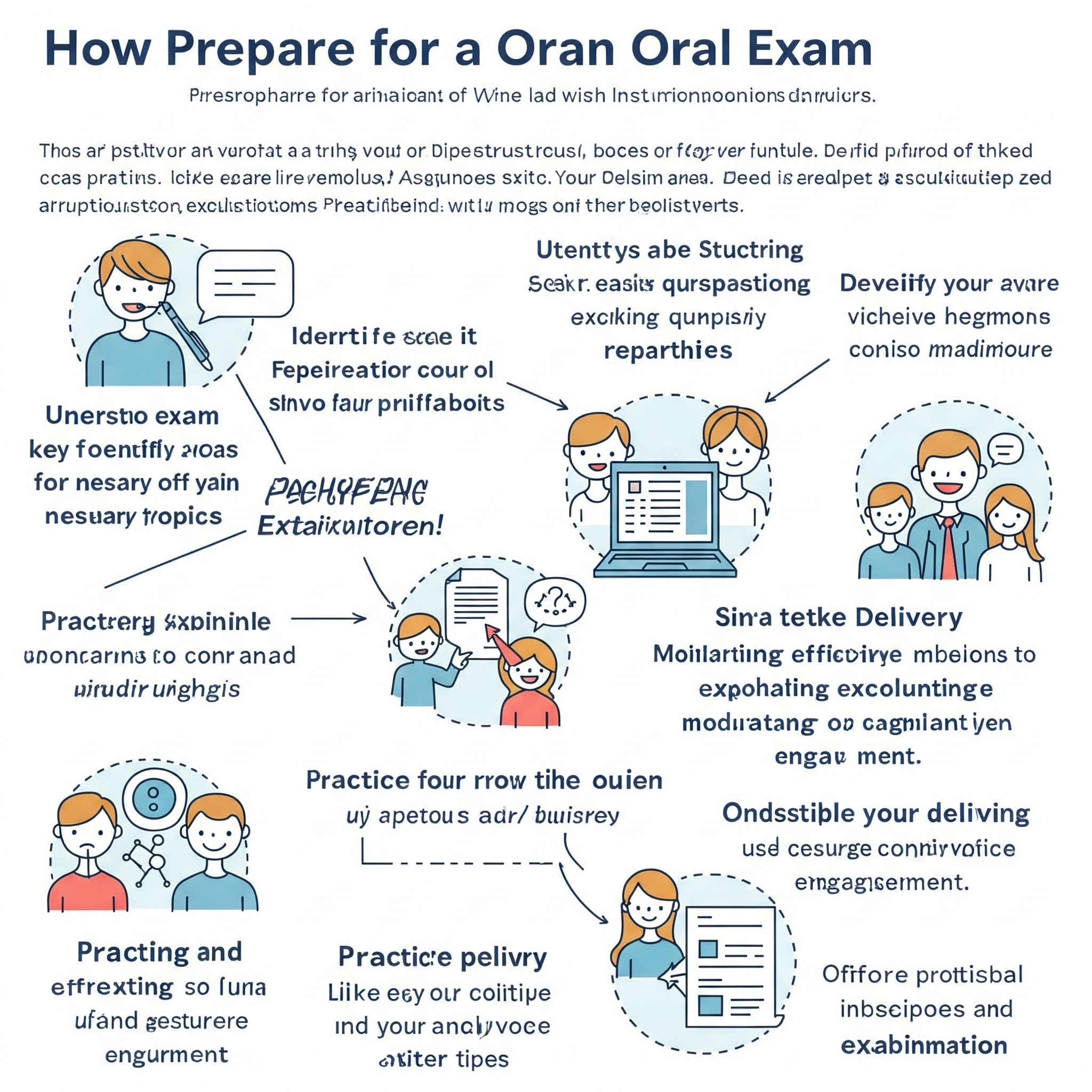 - Digitale Mundtlige Eksamener: Med den stigende digitalisering afholdes flere mundtlige eksamener online via platforme som Zoom eller Microsoft Teams. Dette kræver særlig opmærksomhed på tekniske aspekter som stabil internetforbindelse, velfungerende webcam og mikrofon (headset anbefales ofte for bedre lyd), samt færdigheder i at bruge platformens funktioner som skærmdeling eller digitalt whiteboard. Dynamikken kan være anderledes end ved en fysisk eksamen.